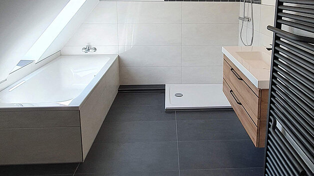 Ein neues Badezimmer steigert nicht nur den Wohnkomfort, sondern passt sich auch an veränderte Bedürfnisse an. Ob bodengleiche Dusche, rutschfeste Böden oder ein stilvolles Fliesendesign – wir gestalten Ihr Badezimmer funktional und ästhetisch ansprechend.